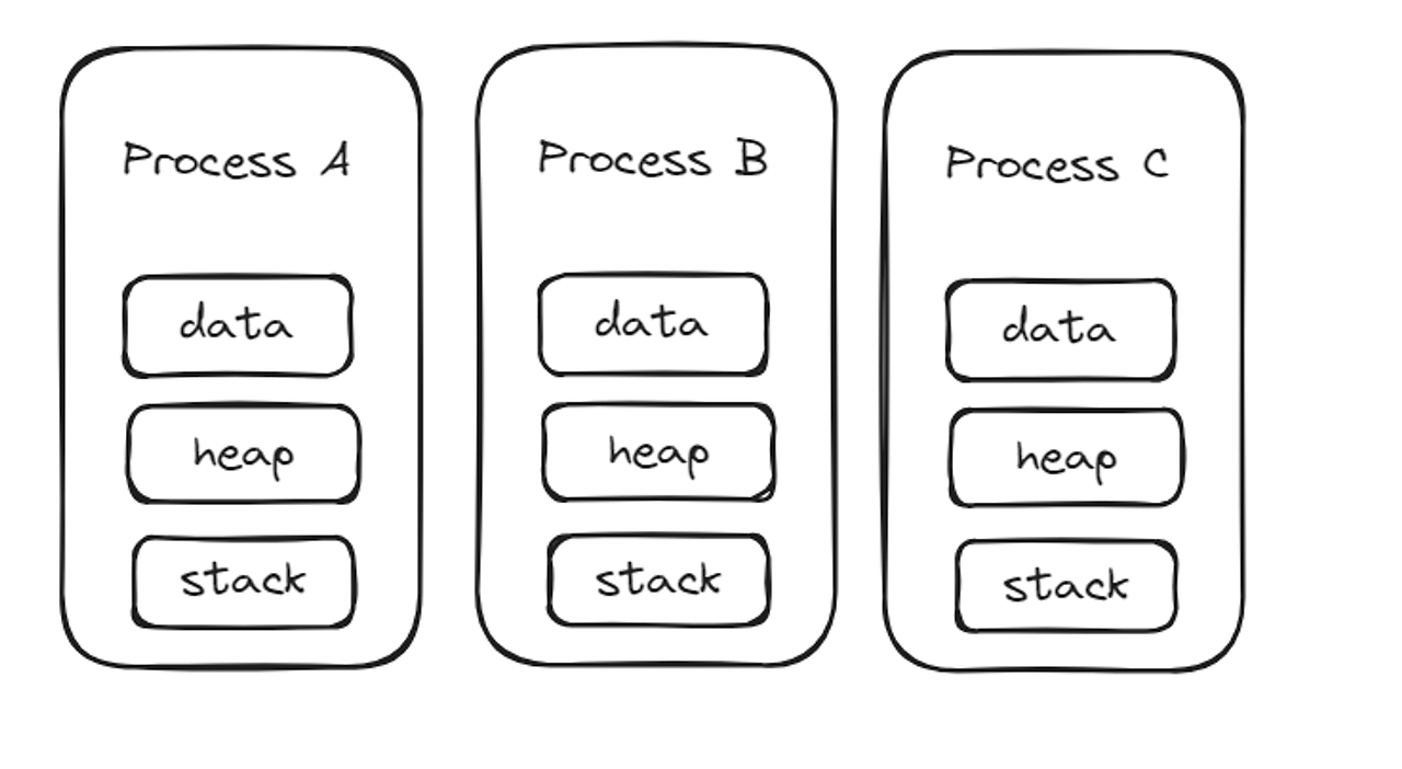 - 컨텍스트 스위칭 시, 데이터와 heap 영역은 메모리에 올리고 내릴 필요가 없다.