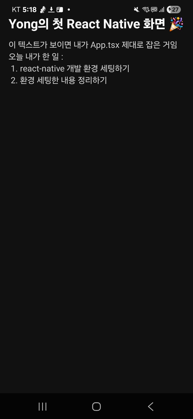 - React Native, Android, JDK, SDK, adb, Metro 환경 세팅 완료